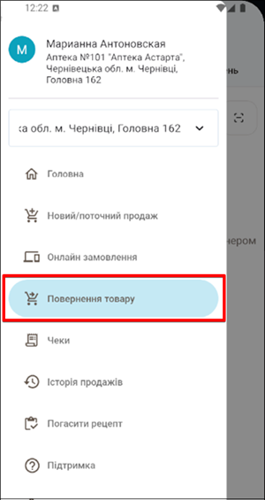 У навігаційному меню відкрийте розділ Повернення товару, натиснувши на нього